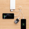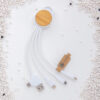 Dieses Kompaktes und einfach zu transportierende Multikabel aus zertifizierten Recyclingmaterialien hat 5 verschiedenen Anschlüsse: USB-C-Eingang, USB-A-Eingang, Type-C-Ausgang, IOS-Ausgang und einen Micro-USB-Ausgang. Dadurch können Sie das Kabel auch mit Type-C Ausgabegeräten verwenden, die in der neueren Generation von Telefonen und MacBook-Computern verbaut sind. Das Kabel verfügt außerdem über eine USB-A-Output-Input-Option, sodass es jedes Gerät von jeder Ausgangsquelle aufladen kann. Das Gehäuse aus FSC®-Bambus und RCS-zertifiziert recyceltem ABS, das Kabel aus RCS-zertifiziert recyceltem TPE-Material. Gesamter Recyclinganteil: 82% basierend auf dem Gesamtgewicht des Artikels. Maximale Kabellänge: 20cm. Verpackt in einer FSC® Mix-Verpackung aus Kraftpapier. PVC-frei.