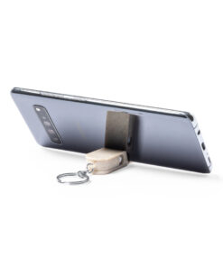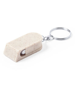 Natur Linie Schlüsselanhänger mit Smartphone-Halterung, hergestellt aus Weizenstroh. Mit Drehmechanismus und mitgeliefertem Bildschirmreinigungszubehör. Verchromter Metallring.Weizenstroh fördert die Verwendung von natürlichen Rohstoffen und reduziert den Schadstoffausstoß.