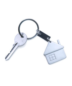 Schlüsselanhänger aus Metall mit tollem Haus-Design in eleganter, matter Ausführung – speziell für den Laserdruck entwickelt.