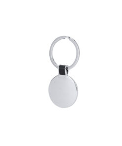 Metallischer Schlüsselanhänger mit Detail in Schwarz.