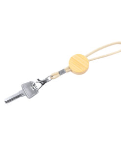 Öko-Schlüsselanhänger aus Bambus, mit Baumwollschnur. Inklusive einem runden Stück zum Branding und einem drehbaren Metallhaken. Präsentiert in einer individuellen Recycling-Papiertüte. Materialien wie Bambus fördern die Verwendung natürlicher Rohstoffe und reduzieren so den Schadstoffausstoß.