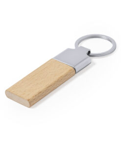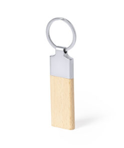 Schlüsselanhänger in einer Kombination aus Metallmaterialien mit Hochglanz-Finish und lackiertem Buchenholz. Mit großer Fläche zum Beschriften und im Einzelbeutel mit Kraftkarte präsentiert.