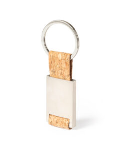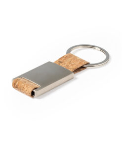 Schlüsselanhänger der Linie Natur mit Naturkorkband und satiniertem Metallgehäuse. Präsentiert in individuellen Beutel mit Öko-Karton innen.