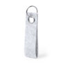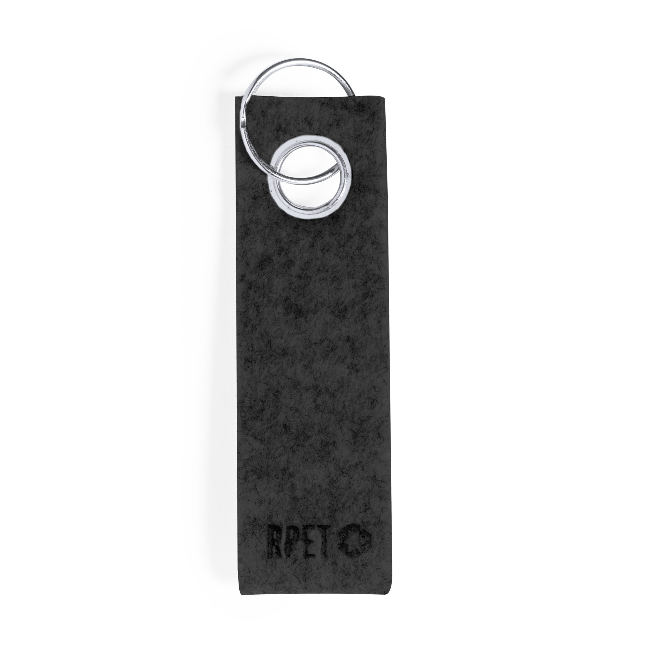 Eleganter Schlüsselanhänger mit Filz-RPET-Band und verchromter Metallöse. Mit dem unverwechselbaren Felt RPET auf dem Band und dem verchromten Metallring. Felt RPET ist das Ergebnis der Kombination der Recyclingprozesse von Kunststoffen mit der jahrtausendealten Technik der Filzherstellung, was zu einem Öko-Trend-Material führt, das nicht nur recycelten Ursprungs ist, sondern auch wiederverwertet werden kann.