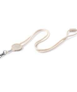 Lanyard der Naturlinie aus widerstandsfähiger Baumwolle. Rundes Accessoire zur individuellen Gestaltung und Sicherheitsverschluss am Hals aus Weizenstroh, mit drehbarem Metallkarabiner. Weizenstroh fördert die Nutzung natürlicher Rohstoffe und reduziert den Schadstoffausstoß.