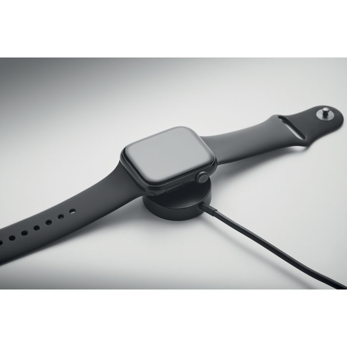 Schlüsselring mit 4in1 Datenübertragungs- und Ladekabel 60W mit Details aus Bambus. Eingang: 2in1 Typ-C <(>&<)> Typ-A. Ausgang: Smartwatch-Ladegerät (Samsung® und Apple®), Typ-C und Mikro-B (2 in 1 Pin).