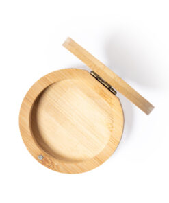 Linie Natur Schmuckkästchen mit Bambusgehäuse. Mit 1X Spiegel innen und Magnetverschluss. Präsentiert in einer individuellen Kraft-Design-Box.