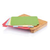 Schneidebrett aus dunklem Bambus 35 x 25 cm, inkl. 4-tlg. Set aus Kunststoff Schneideunterlagen, spülmaschinenfest, in unterschiedlichen Farben mit Symbolkennzeichnung, für welche Art von Lebensmittel das jeweilige Brett geeignet ist.
