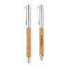 Schreibset aus Metall mit Drehkugelschreiber (blaue Tinte) und Rollerball (schwarze Tinte) mit Schaft aus Kork. Lieferung in passender Schachtel aus Kork. Kork ist ein natürliches Material, aufgrund seiner strukturellen Beschaffenheit und Oberflächenporosität kann das Druckergebnis pro Artikel Abweichungen aufweisen.
