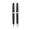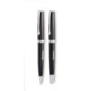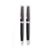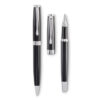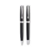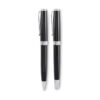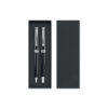 Set mit Drehkugelschreiber und Tintenroller mit Korpus aus recyceltem Edelstahl. Blaue bzw. schwarze Tinte. Lieferung in einer Schachtel.