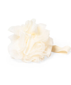 Weicher Badeschwamm aus PE-Faser, mit passendem Befestigungsband und großer Markierungsfläche.