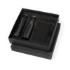 Elegantes Premium-Set, bestehend aus:Doppellagige Thermoskanne aus recyceltem Edelstahl mit mattschwarzem Finish und 500 ml Fassungsvermögen, mit stabilem, matt-silberfarbenem Metallgriff. Mit Edelstahl-PlaketteRPET-Notizblock in elegantem Schwarz, mit speziellen Metalldetails für die Laserbeschriftung. Mit elastischem Verschluss und Lesezeichen aus Stoff. Innen mit 80 Blatt einfarbigem Layout. Mit RPET-LogoFaltbarer Regenschirm in Schwarz mit einem Durchmesser von 98 cm. Hergestellt aus 190T RPET-Pongee-Material. Manuelle Öffnung, mit Anti-Wind-System und Fiberglas-Rippen. Mit Tragetasche und passenden Bändern. Mit unverwechselbarem RPET-Etikett.Kugelschreiber aus RPET mit mattschwarzem Finish, Drehmechanismus und blauer Tinte. Präsentiert in einem individuellen, mattschwarzen Etui mit einer Innenstanzung für jedes Element des Sets.Das RPET-Material wird aus recyceltem Kunststoff hergestellt, wodurch die Wiederverwendung von Kunststoffabfällen gefördert und ein Beitrag zur Nachhaltigkeit unseres Planeten geleistet wird.