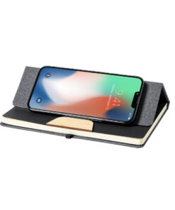 Elegantes Premium-Set, bestehend aus:Doppelwandiger Thermobecher aus rostfreiem Stahl. 640 ml Fassungsvermögen, mit Bambusfläche auf dem Deckel für das Branding. Weicher PU-Notizblock mit integriertem Smartphone-Halter auf dem Deckel und Bambusfläche für das Branding. Inklusive Gummiverschluss, Lesezeichen und farblich passendem Stifthalter. Innen mit 80 Einstreifen-Layoutblättern. Aluminium-Kugelschreiber in matter Ausführung mit Bambusfläche für das Branding, Drehmechanik und blauer Tinte. Präsentiert in einem individuellen, mattierten Etui mit Magnetverschluss, einschließlich Innenstanzung für jedes Element des Sets.