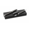 Elegantes Set aus Dreh-Kugelschreiber und Tintenroller mit schlichtem Design. Mit geschmeidigem Aluminiumschaft mit Details in Silber. Präsentiert in einem schwarzen Karton-Etui. Kugelschreiber mit Jumbo-Patrone mit blauer Tinte.