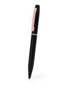Kugelschreiber und Rollerball aus recyceltem Aluminium, im eleganten matten Schwarzdesign mit edlen Fittings in Rosa-Gold. Drehmechanismus beim Kugelschreiber und Kappe beim Rollerball, beide mit Metallclip. Mit blauer Tinte und recyceltem Aluminium Logo. Präsentiert in einem eleganten schwarzen Etui.Recyceltes Aluminium ist ein Material mit nahezu unendlichen Recyclingmöglichkeiten, das seine ursprünglichen Eigenschaften behält und weniger Energie im Verarbeitungsprozess verbraucht.GRS (Global Recycled Standard) Zertifizierung, die die recycelte Herkunft des für das Produkt verwendeten Materials garantiert.