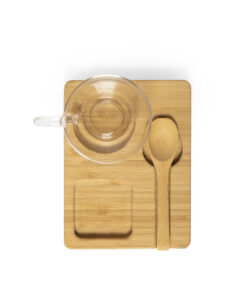 Naturlinie Set. Einschließlich 180-ml-Becher aus Borosilikatglas, das eine außergewöhnliche Widerstandsfähigkeit und Haltbarkeit bietet, seine Lebensdauer verlängert und vielfach wiederverwendet werden kann. Servierboard und Löffel aus poliertem Bambus, präsentiert in einer attraktiven Design-Box.