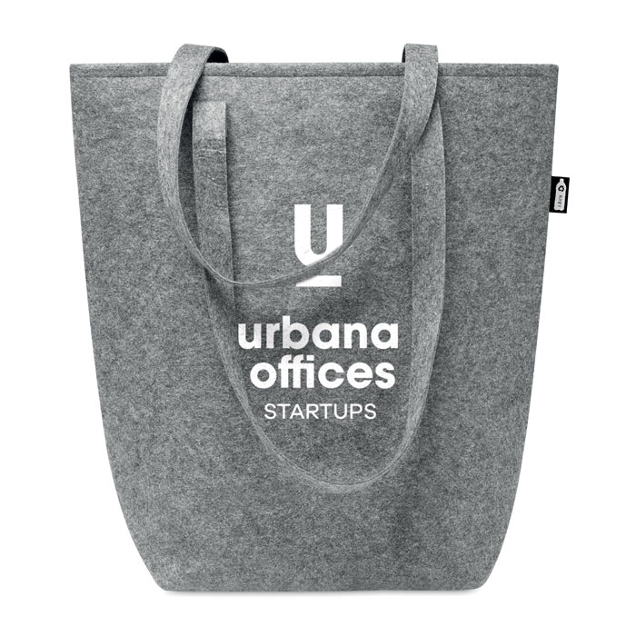 Shopping Tasche aus RPET-Filz mit langen Tragegriffen und Bodenfalte. Filzstärke: 2 mm.