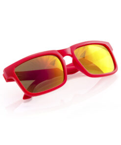 Sonnenbrille mit UV-400-Schutz und klassischem Sommerdesign. Mit mattem Rahmen in fröhlichen Farben und verspiegelten Gläsern in passender Farbe.