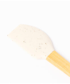 Küchenspatel mit Silikonende, in attraktiver Naturfarbe. Sein Griff aus Bambus sorgt für Komfort. Präsentiert in einer individuellen Recycling-Papiertüte.