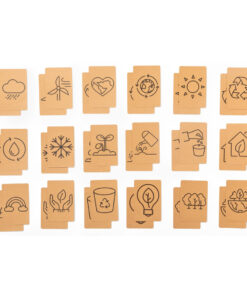 Ökologisches Bewusstseinsspiel aus recyceltem Karton. Set mit 36 Karten in einer Einzelschachtel aus recyceltem Karton.