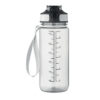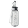 Trinkflasche aus RPET. Integrierter Trinkhalm, weiches Silikonmundstück, motivierende Zeitmarkierung, einhändig zu öffnender Flip-Top-Deckel, Sicherheitsverschluss und Schlaufe. Füllmenge: 700 ml.