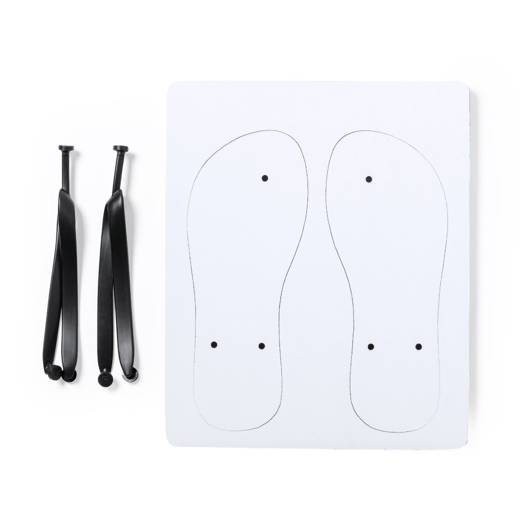 Paar Flip-Flops mit 100 % anpassbarer Sohle und speziell für den Sublimationsdruck konzipiert. Mit widerstandsfähiger EVA-Sohle, schwarzen PVC-Riemen und in zwei Größen erhältlich: 36-38 und 42-44. Set inklusive gestanztem EVA-Panel zur individuellen Gestaltung.