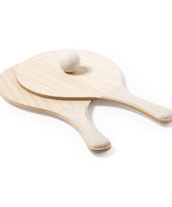 Ein Paar Strandschläger speziell für den Sublimationsdruck. Aus Holz, mit verstärktem Griff aus Weizenstroh. Mit Weizenstroh-Logo auf dem Griff und in einem Netzbeutel und mit einem Ball aus Weizenstroh präsentiert.Weizenstroh fördert die Verwendung natürlicher Rohstoffe und reduziert so die Schadstoffemissionen.