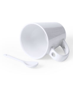 Keramiktasse in Weiß mit 350 ml Fassungsvermögen. Mit integriertem Keramiklöffel im Henkel. Speziell für den Sublimationsdruck entwickelt. Präsentiert in einer individuellen Box.Bedienungsanleitung in Spanisch und Englisch verfügbar.