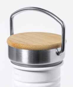 Edelstahlflasche, speziell für den Sublimationsdruck entwickelt. Retro-Stil und 700 ml Fassungsvermögen. Schraubbarer Sicherheitsdeckel aus Edelstahl mit Bambus-Detail und Vintage-Tragegriff. Präsentiert in einer attraktiven Designbox.