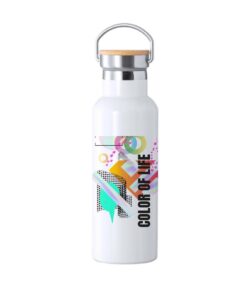 Thermobecher mit 500 ml Fassungsvermögen, aus doppelwandigem Edelstahl und speziell für den Sublimationsdruck entwickelt. Glänzend weiße Oberfläche und origineller Schraubverschluss aus Edelstahl mit Bambusdetail und integriertem Griff. BPA-frei und in einer individuellen Kraft-Design-Box präsentiert.Gebrauchsanweisung in Englisch und Spanisch erhältlich.