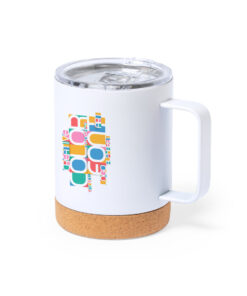 Thermotasse aus doppelwandigem Edelstahl mit 330ml Fassungsvermögen. Speziell für Sublimationsmarkierungen und Hochglanz-Weiß. Mit Dosierer im Deckel mit Schnellverschluss, BPA-frei und einem Boden aus Naturkork. Es ist ideal für Ihren Schreibtisch, Tisch oder jede andere Oberfläche, auf der Sie in Ruhe Ihr Lieblingsgetränk genießen können.