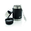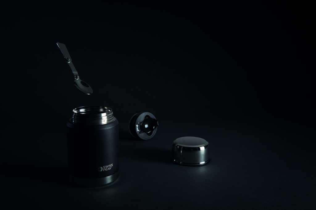 Die Swiss Peak Elite Serie überzeugt durch eine Vakuum-Isolierung und ist doppelwandig aus 18/8 Stainless-Steel. Die schwarze Pulverbeschichtung ist äußerst langlebig – keine Abnutzung oder Kratzer mehr! Die Innenseite ist mit Kupfer beschichtet um den Inhalt 8h warm oder 24h kühl zu halten. Inkl. einem 18/8 Stainless-Steel Löffel. Nur Handwäsche. Auslaufsicher. 500ml
