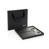 Dieses luxuriöse Geschenkset enthält die wichtigsten Utensilien, die Sie für Ihren Alltag benötigen. Damit Sie Ihre wichtigsten Schlüssel immer griffbereit haben, enthält das Set einen hochwertigen Swiss Peak-Schlüsselanhänger mit glänzender Metallic-Oberfläche und einem wunderschön gearbeiteten PU-Lederband. Möchten Sie schnell eine Notiz machen oder eine Idee festhalten? Dieses Set enthält einen eleganten blauschreibenden Business-Kugelschreiber mit einer Schreiblänge von 1000 Metern und ein Soft-Touch-Notizbuch aus recyceltem Polyester. Das Notizbuch enthält 160 cremefarbene Seiten aus Recyclingpapier. Alle Artikel in diesem Geschenkset sind RCS-zertifiziert, was eine vollständig verifizierte Lieferkette für die verwendeten recycelten Materialien garantiert. Insgesamt bestehen die Produkte in diesem Set zu 75% aus recycelten Materialien.