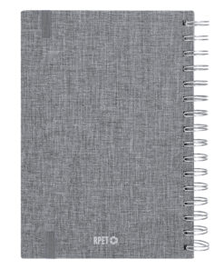 Ringbuch-Tagebuch im A5-Format aus weichem und strapazierfähigem RPET, mit Hartdeckeln und Gummibandverschluss. Inklusive Präsentationsbox aus Kraftpapier und RPET-Logo.Tag Seite, mit einem Bereich für Notizen und Stofflesezeichen. In 2 Sprachen: Englisch und Spanisch.Das RPET-Material wird aus recyceltem Kunststoff hergestellt, wodurch die Wiederverwendung von Plastikabfällen gefördert und die Nachhaltigkeit des Planeten unterstützt wird.