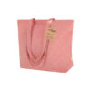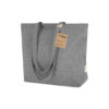Tasche hauptsächlich hergestellt aus 220 g/m2 recycelter Baumwolle mit Bodenfalten. Lange 70 cm-Griffe mit Verstärkung, genäht. Logo am seitlichen Etikett und Tragfähigkeit bis zu 6 kg.