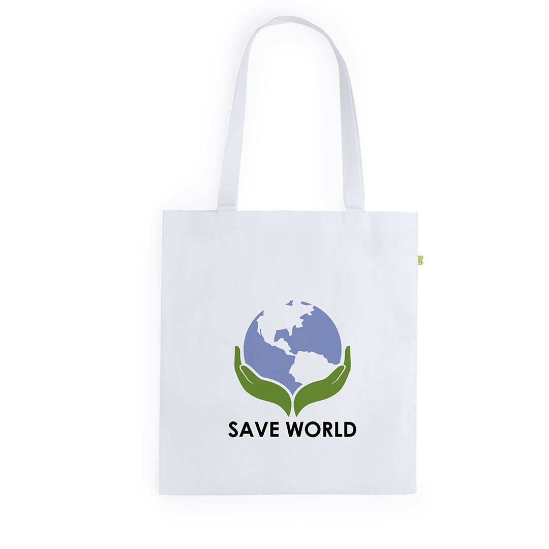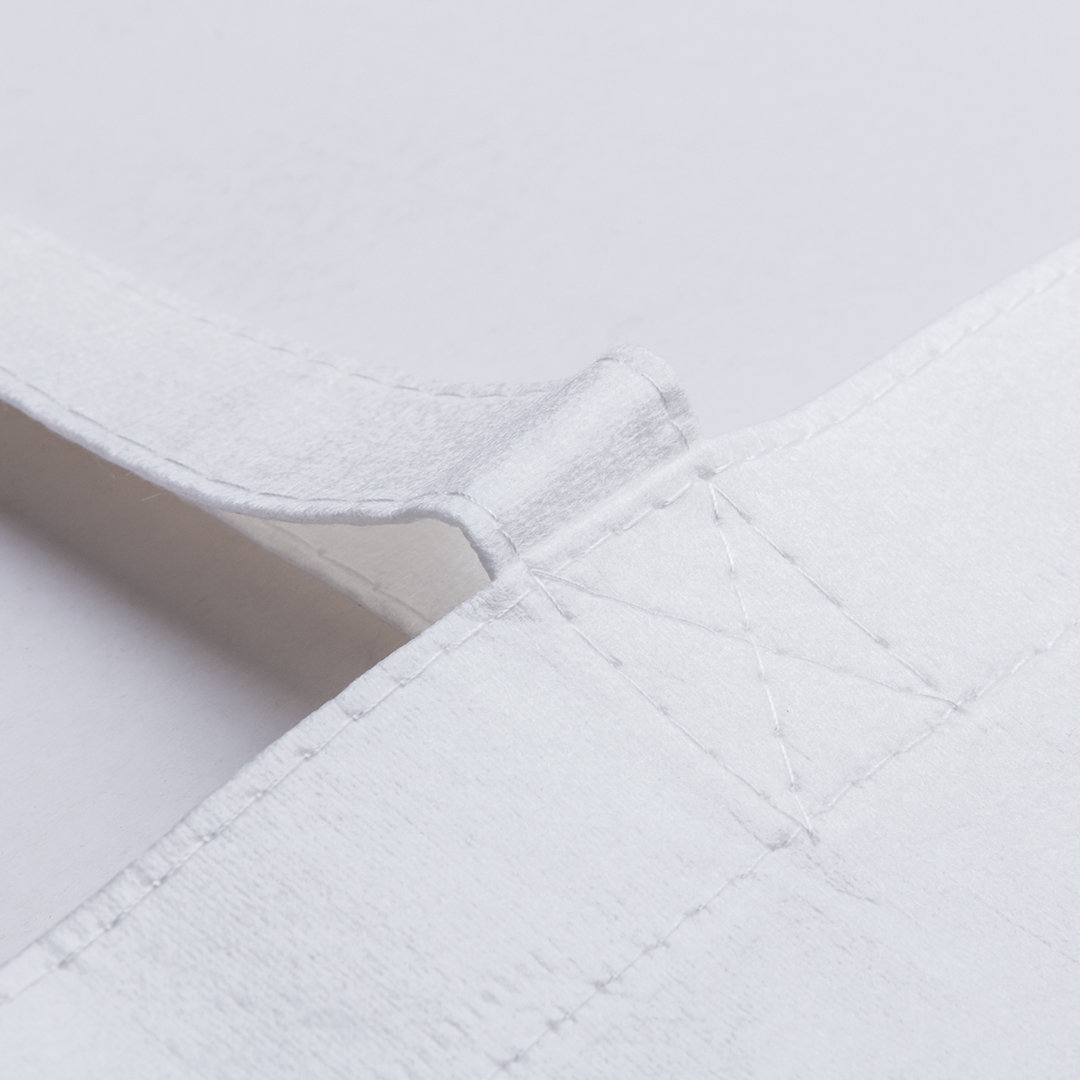 Ökologische Tasche aus hochresistenten Bambusfasern. Mit 70 cm langen Henkeln und Steppnähten. Belastbar mit bis zu 10 kg.