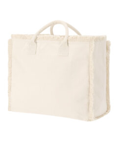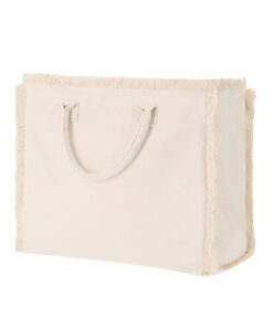 Tasche im Fransen-Stil, hauptsächlich aus 360 g/m2 Baumwolle gefertigt. Mit praktischem und modernem Design, beinhaltet verstärkte kurze Griffe. Enthält einen Reißverschluss für zusätzliche Sicherheit und eine Innentasche mit Reißverschluss.