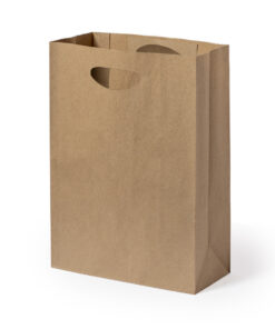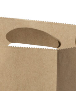 Linie „Natur“ Leichtgewichtige Tasche aus 80 g/m2 Recyclingpapier. Mit originell gestanztem Griff und Bodenfalte.