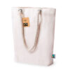 Natur Linie Tasche aus Baumwolle mit einer natürlichen Farbe 280g/m2. Mit der Fairtrade-Zertifizierung (Fair Trade) ein solidarisches und alternatives Handelssystem, das die Entwicklung der Völker und die Bekämpfung der Armut zum Ziel hat. Genäht, Griffe inSeilform und Ösen für zusätzliche Festigkeit. Inklusive Fairtrade-Label und unverwechselbarem Hangtag aus recyceltem Karton.