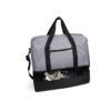 Mehrzwecktasche aus widerstandsfähigem Denim-Polyester 600D. Städtisches Design, einschließlich RFID-Taschen-Sicherheitstechnologie (Radio Frequenz Identifikation), die die Kartendaten sicher aufbewahrt. Reißverschlussfach für Schuhe und Seitentasche mit Reißverschluss. Hauptfach mit Doppelreißverschluss und verstärkten Tragegriffen, mit Knopfverschluss. Nylon-Riemenverstärkung um den Körper und verstellbarer Schultergurt.