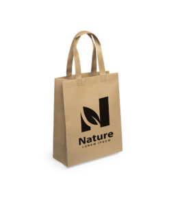 Wiederverwendbare Tasche Natur inspiriert in schwerem 90g/m2 Vliesmaterial. Größe 25×31+11 cm, mit genähter Verarbeitung und verstärkten, 27 cm langen Henkeln. Widerstandsfähig bis zu 7 kg Gewicht.