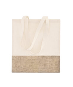 Ökologische Tasche aus einer robusten Kombination von natürlichen Materialien – Baumwolle und Jutefasern (245 g/m2). Mit attraktivem, zweifarbigem Design, Steppnähten und 70 cm langen, verstärkten Henkeln. Belastbar mit bis zu 8 kg.