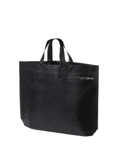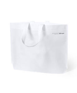 Linie „Natur“ Tasche, hergestellt aus 70g/m2 recyceltem Vliesstoff. Hergestellt in Europa, mit verschweißter Oberfläche, Seitenfalte, langen Griffen und Öko/Made-Emblem auf der Tasche.