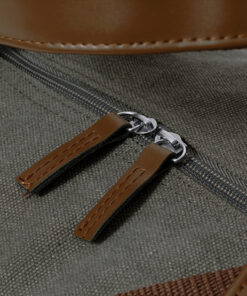 Stilvolle Tasche aus strapazierfähigem grauem Canvas (475 g/m2), mit praktischen und strapazierfähigen Kunstledergriffen rund um die Tasche und verstärkten Ecken. Hauptfach mit Reißverschluss passend zu den Griffen und verstellbarem Schultergurt mit Karabinerhaken. Inklusive leicht zugänglicher Außentasche.Präsentiert in einer individuellen recycelten Tasche“.