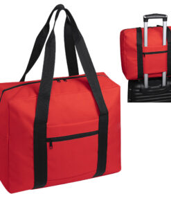 Mehrzwecktasche aus widerstandsfähigem Polyester-Denim 600D Material und zweifarbigem Design, in einer breiten Palette von Farben. Hauptfach mit doppelten Reißverschlusszügen, einschließlich Trolley-Verstellriemen, widerstandsfähigen Nylon-Griffen und einer Seitentasche mit Reißverschluss.