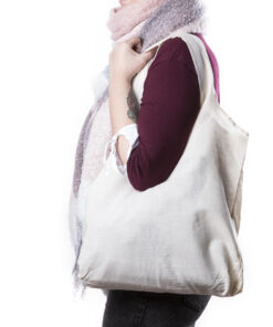 Tasche aus Baumwolle in Naturfarbe. Mit originellen Henkeln zum Tragen über der Schulter und Steppnähten. Belastbar mit bis zu 7 kg.