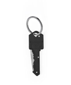 Einzigartiges Schlüsselmesser aus Aluminium und Edelstahl. Mit Schlüsselring und Klappklinge. Einzeln präsentiert in einer Kraftbox.