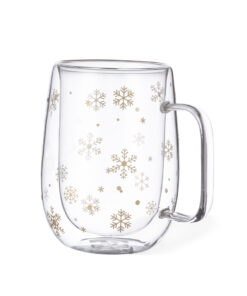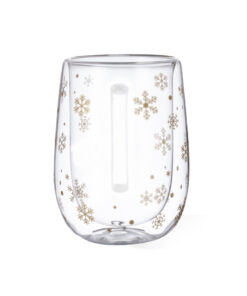 Doppelwandiger Thermobecher mit 400 ml Fassungsvermögen. Mit originellem Schneeflocken-Design und speziellem Beschriftungsfeld auf der Vorderseite. Hergestellt aus Borosilikatglas, das eine außergewöhnliche Festigkeit und Haltbarkeit bietet, die Lebensdauer verlängert und unzählige Male wiederverwendet werden kann.Präsentiert in einer schwarzen Designbox mit goldfarbener Illustration.
