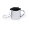 Doppelwandiger Edelstahlbecher mit 145ml Fassungsvermögen. Glänzendes Design mit schwarzem Schnappdeckel mit optimaler Abdichtung durch den Silikonring, hat einen praktischen Karabinerhaken für den einfachen Transport. Präsentiert in einer individueller Kraft-Design-Box.