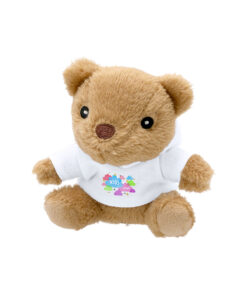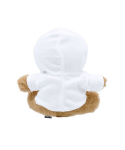 Weicher Plüschbär, hergestellt aus RPET mit personalisierbarem Sweatshirt, ideal für Sublimation.Das RPET-Material wird aus recyceltem Kunststoff hergestellt, um die Wiederverwendung von Kunststoffabfällen zu fördern und zur Nachhaltigkeit des Planeten beizutragen.